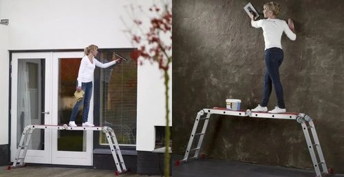 Nuestra polifacética escalera multipropósito, se adapta a cualquier situación y lugar. Con sus 5 diferentes funciones cubre las necesidades que se tengan en el hogar, trabajo, construcción y tareas de mantenimiento. Hecha con materiales de alta calidad, bisagras multi-posiciones, zapatas antideslizantes que aseguran la funcionalidad y durabilidad del producto. Se pliega fácilmente para un cómodo almacenaje.